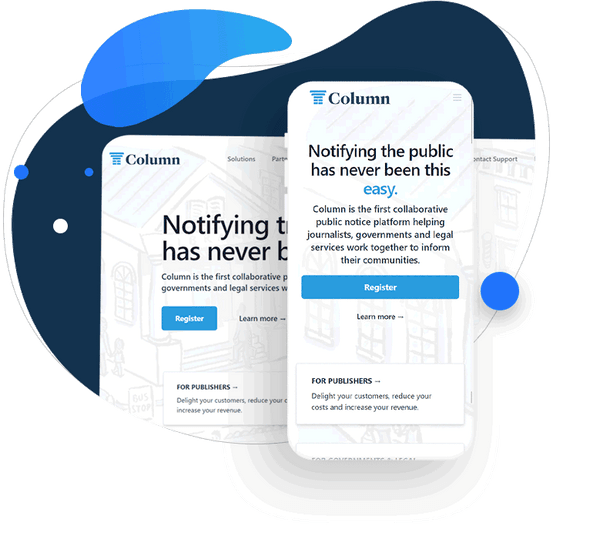 A collaborative public notice platform helping journalists, governments, and legal entities to distribute public interest information.